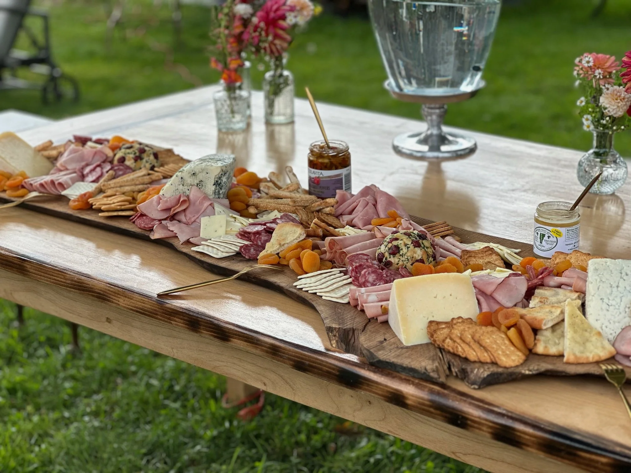 Charcuterie $12 to $14 per person -- minimum 10 people Assorted Cured Meats and Cheeses, Olives, Crudites and Spreads, Dry and Seasonal Fresh Fruits, Pickles, Nuts and Assorted Crackers. $12 to $14 per person -- minimum 10 people